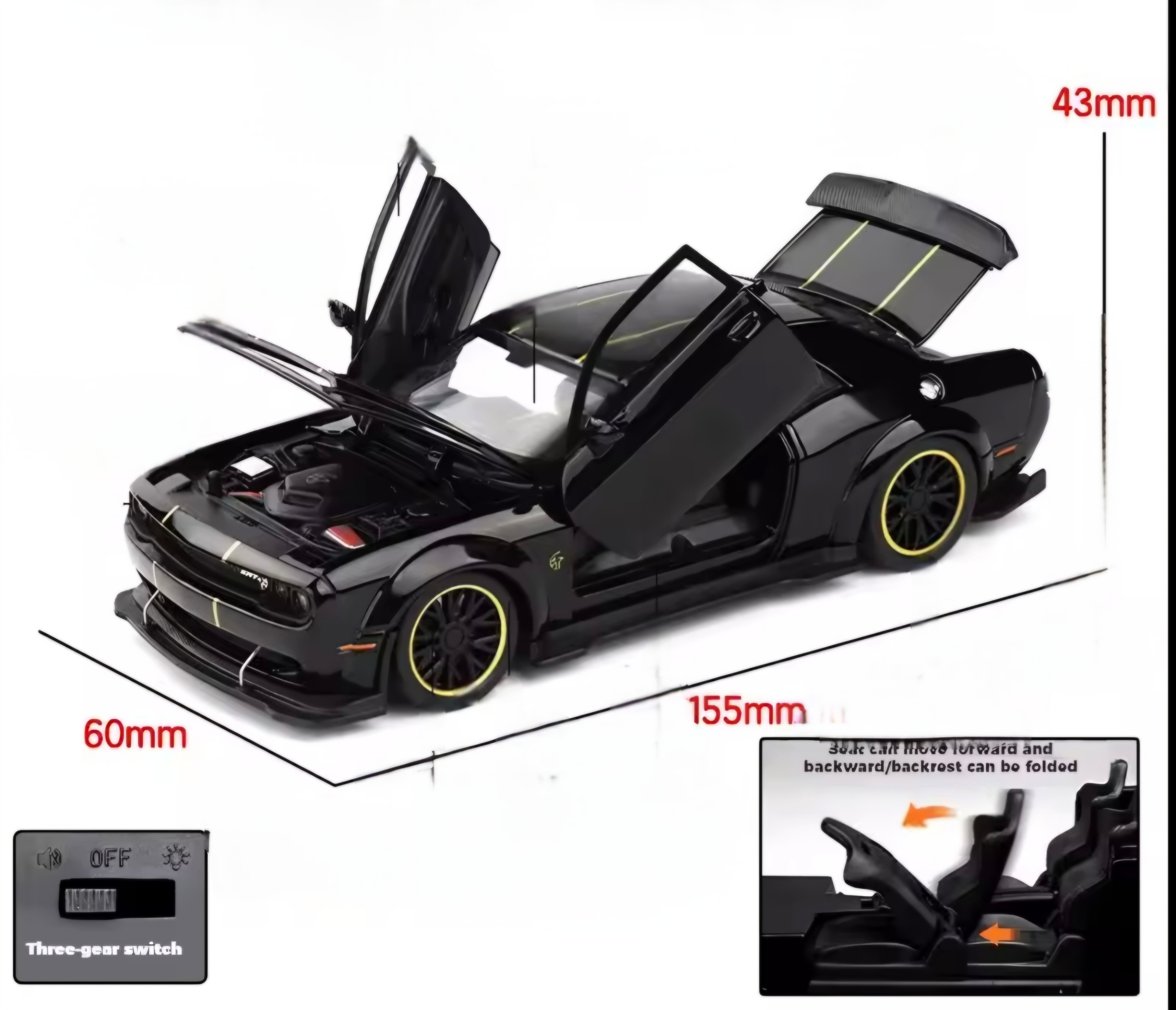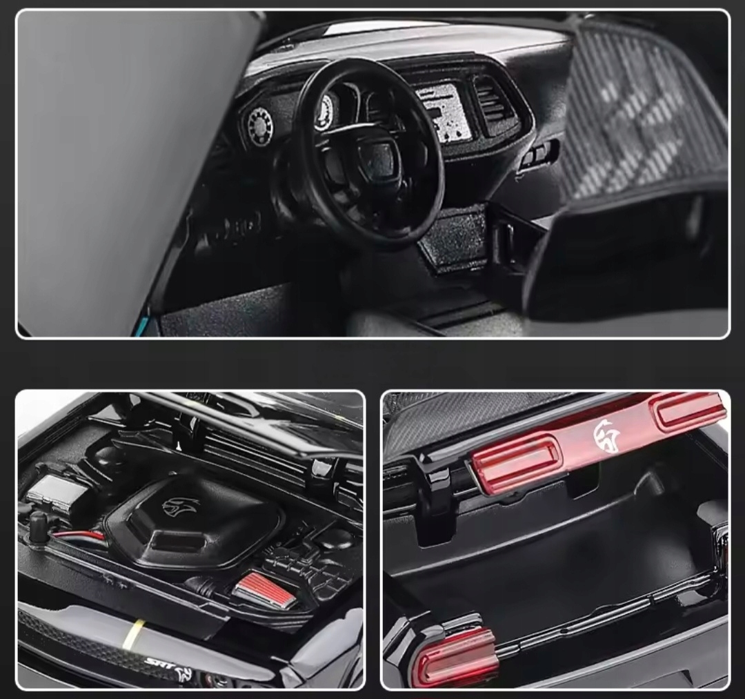 Чудової якості модель DODGE CHALLENGER HELLCAT SRT V8 в масштабі 1:32 (точні розміри на фото)