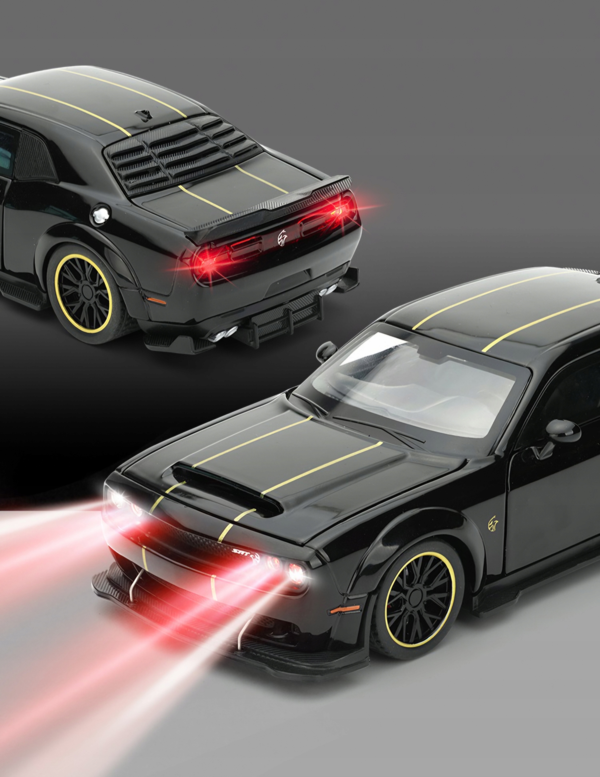 Модель АВТОМОБІЛЬ DODGE CHALLENGER SRT HELLCAT V8 1:32 підставка коробка світлодіодна дзвінка