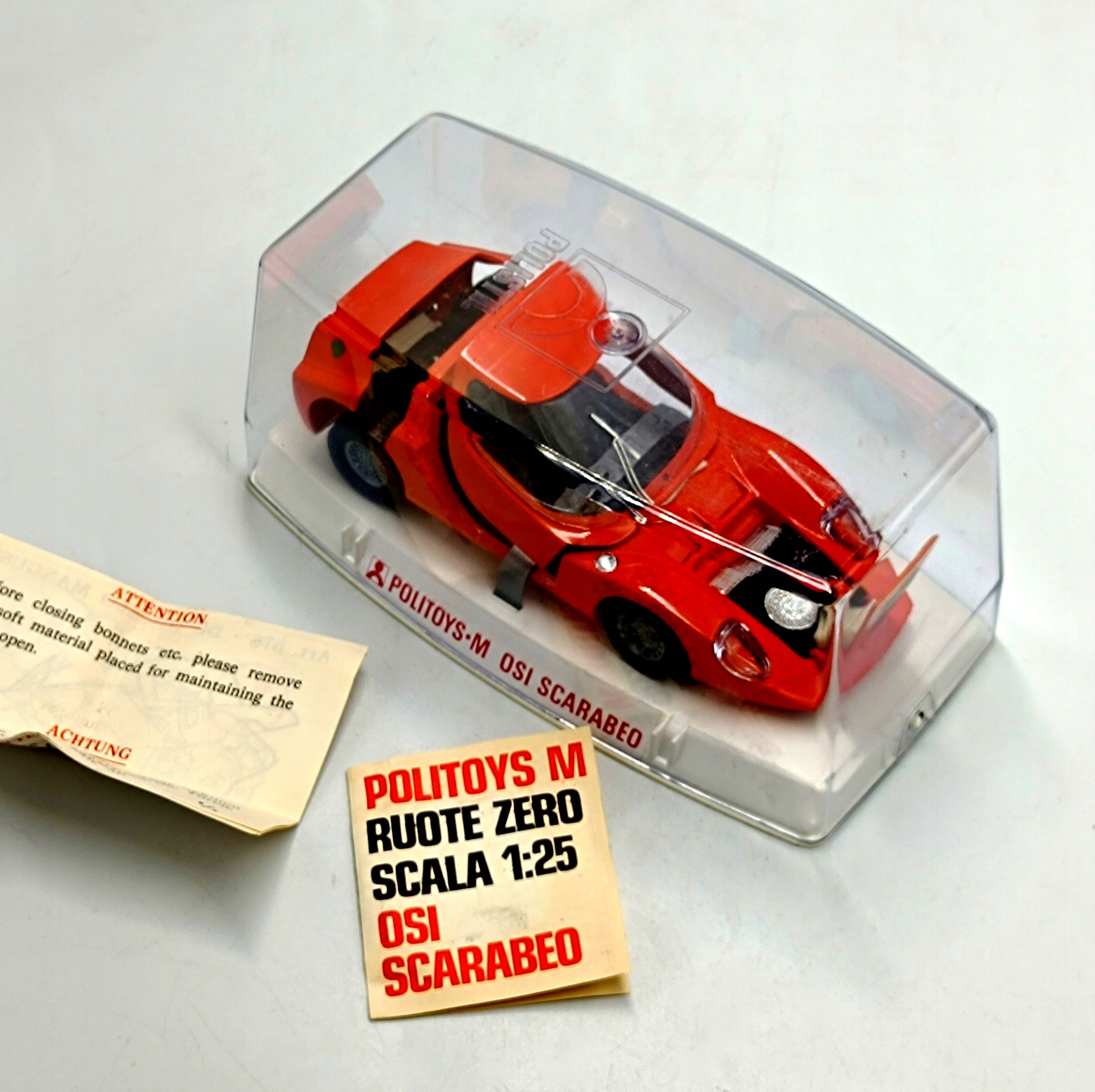Це модель першого прототипу цього автомобіля, тому що їх було 3, останній з яких не був завершений. Модель Axis Scarabeo початку 1970-х років була розроблена Джузеппе Буссо та Ораціо Сальта Пуліга для Alfa Romeo з кузовом, розробленим Серджіо Сартореллі. Це прототип автомобіля в стилі купе із заднім розташуванням двигуна. Він привертає увагу багатьох людей завдяки своєму футуристичному та унікальному дизайну. Полістіл відтворив його в масштабі 1:25 дуже реалістично. Модель має 3 відкриваються частини (задня відкривається, двері відкриваються вперед і передня) Виготовлялася в кольорах помаранчевий, жовтий, білий і коричневий (це в порядку зростання рідкості). Alfa Romeo Axis Scarabeo дебютував у 1966 році, коли був представлений на Паризькому автосалоні.