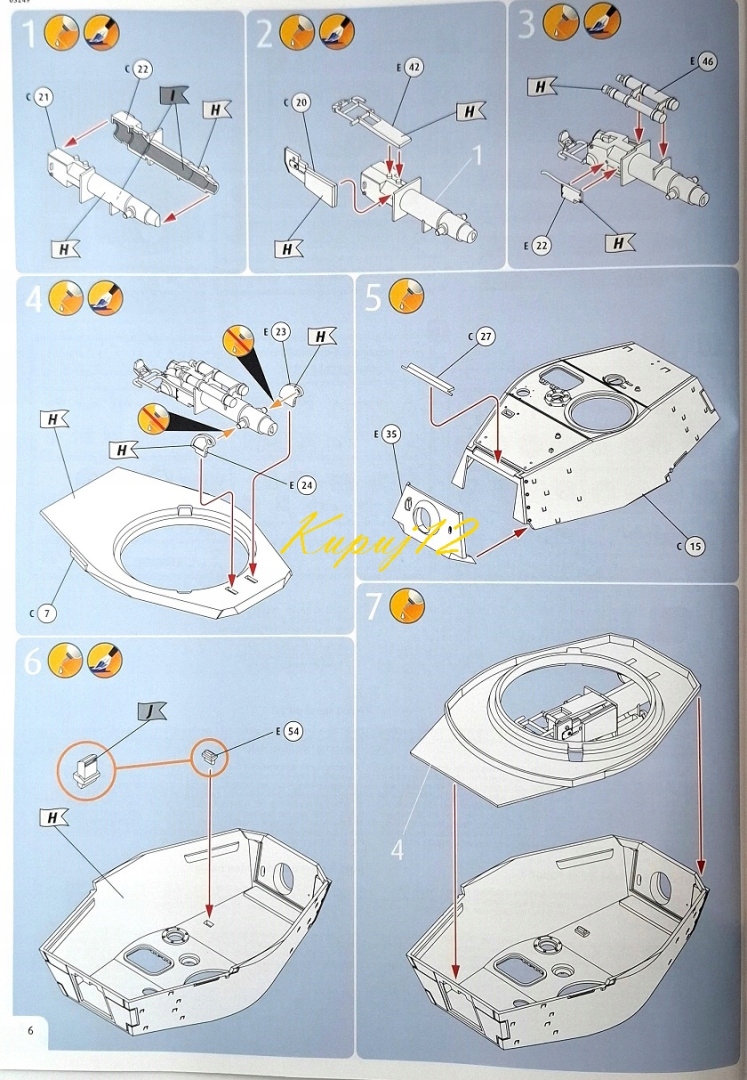 його слід пофарбувати 1- рази Усі елементи, які згодом будуть намальовані зовнішніми фарбами. Деякі елементи можуть вимагати малювання перед склеюванням (наприклад, центр кабіни).