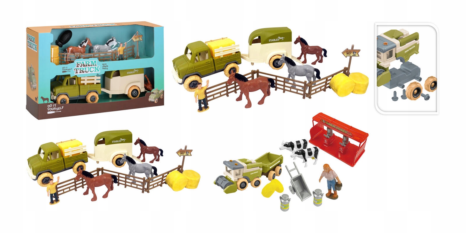 Модель ферми - машина з візком 26 см, тварини та аксесуари, різні типи