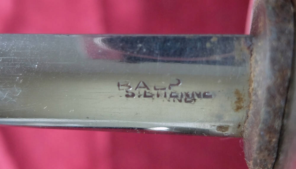 Копію можна побачити на фотографіях. Лезо не заточене, не заточене та має 99% оригінального хрому. Маркування BALP ST видно на порозі леза. ЕТЬЄН. Стержень ручки роговий. Оригінальна коса частково збереглася, але котушки відсутні. Під поперечиною є оригінальна шкіряна накладка. Кошик для рукоятки вільний.