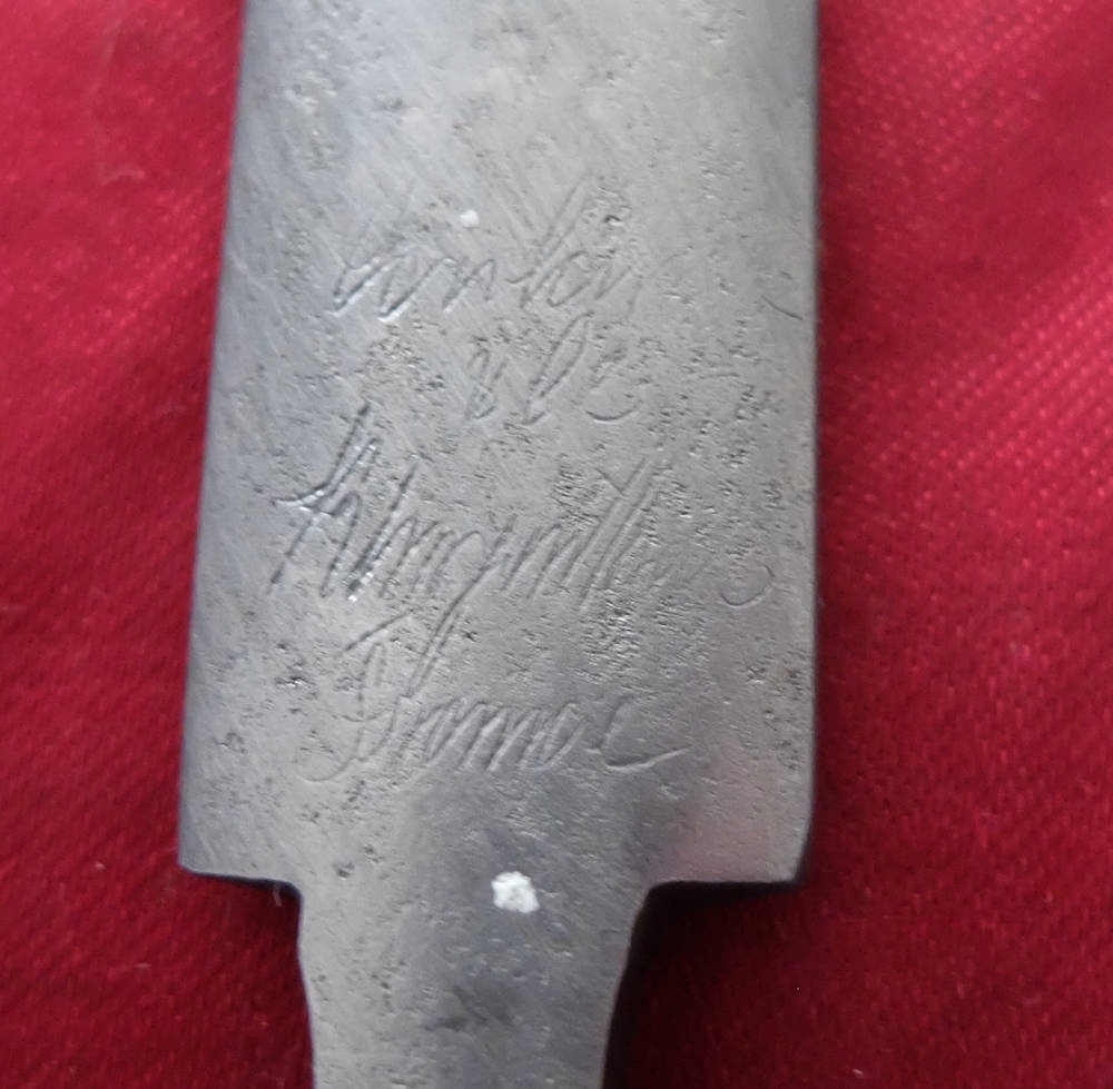 Копія, яку видно на фото. Лезо незаточене і незаточене. Засипається дрібною манкою. На краю леза є маркування Клінгенталя та маленький підпис з іншого боку.