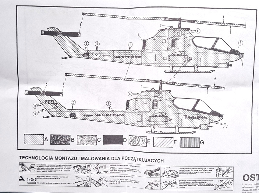 МОДЕЛЬ гелікоптера Bell AH-1G Huey Cobra + килимок А3, фарби, клей, пензлі