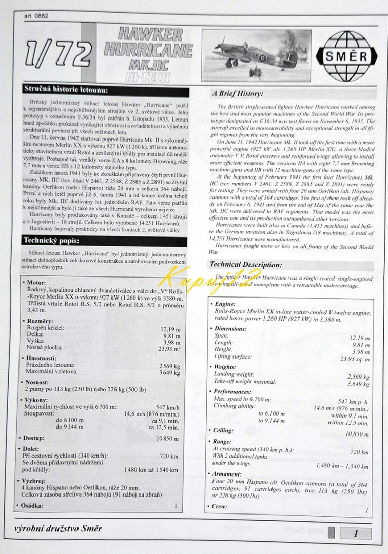 Модель британського винищувача ураган Hawker Mk.ii C Набір: Фарба для праймерів, Модриг -фарби, клей, лак, щітки, стрічка
