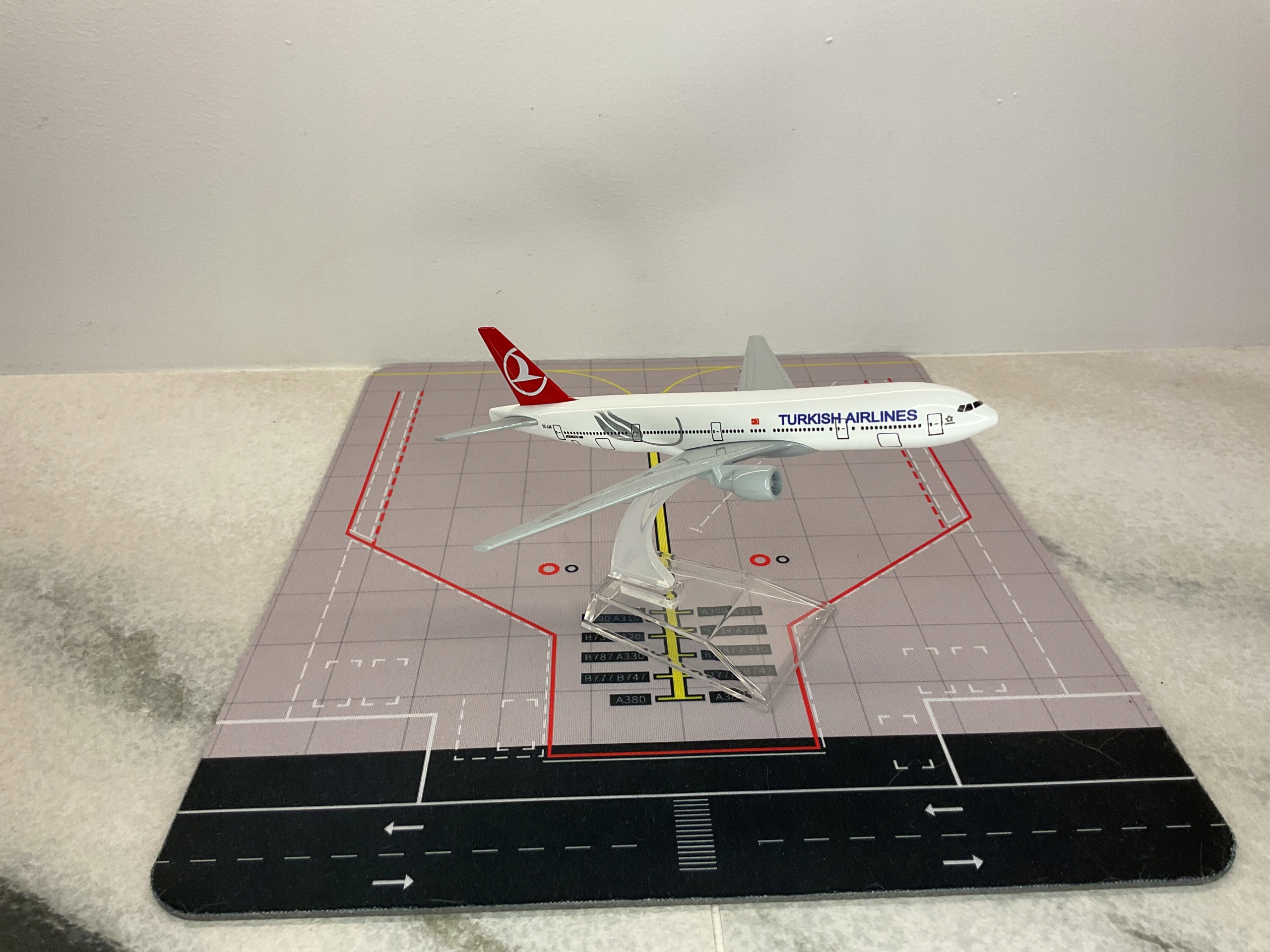 Модель літака Boeing B777 у турецькій лівреї. Модель відрізняється винятковою увагою до деталей, що робить її ідеальною для колекції авіаційних ентузіастів або як унікальну прикрасу.