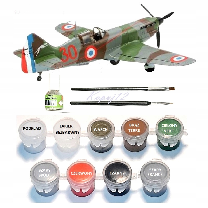 Модель літака Dewoitine + фарби + клей + інше ... масштаб 1:72