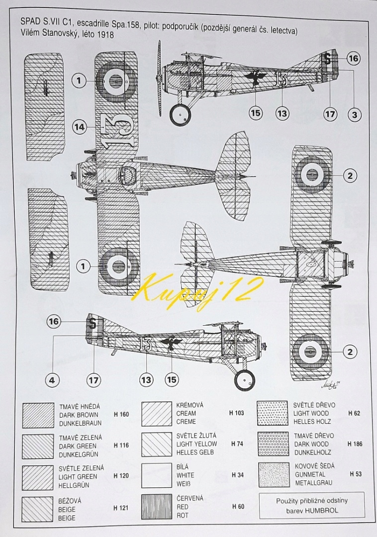 Модель літака для поклейки SPAD S.VII + грунт, фарби, лак, мийка