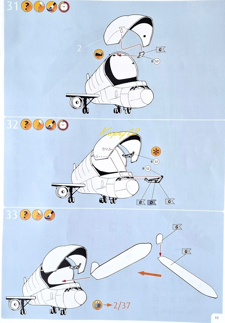 Модель необхідно розфарбувати моделюючими фарбами відповідно до запропонованої схеми малювання, яка міститься в інструкції, а потім нанести декалі, що входять до набору.