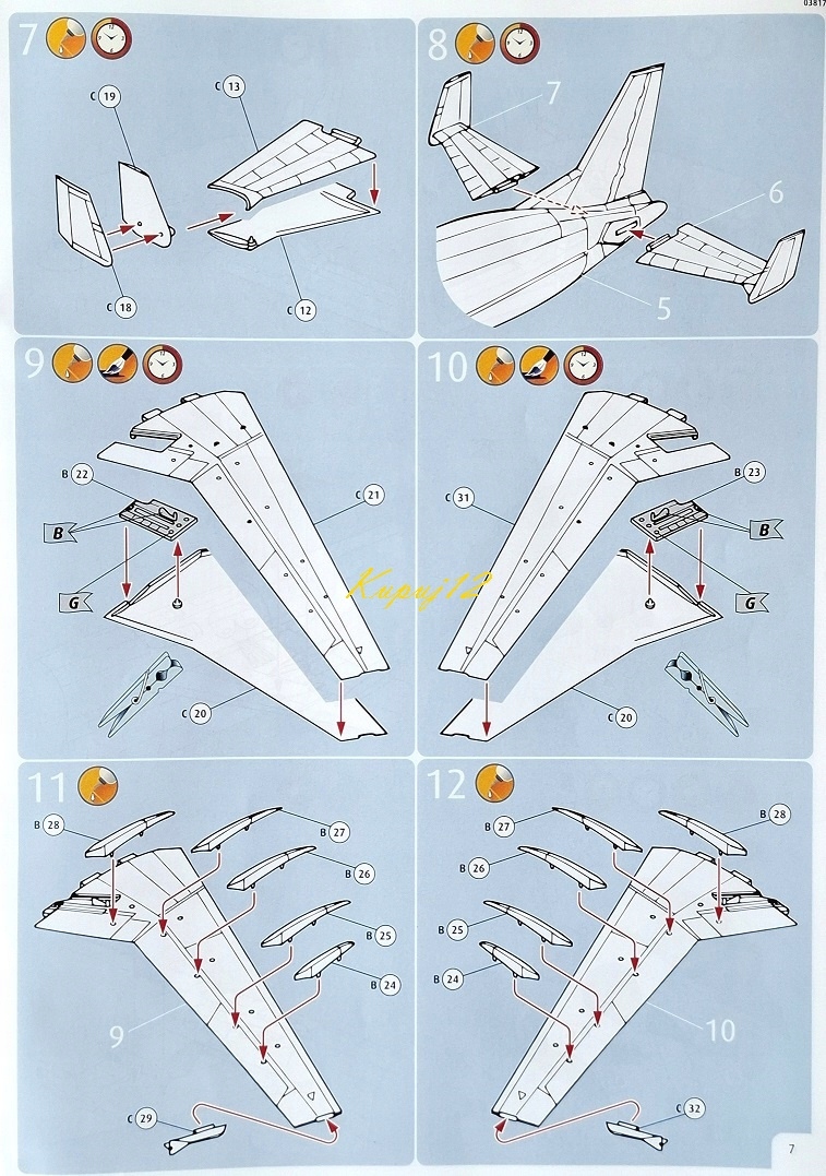Пластикові елементи необхідно вирізати з каркасів, підігнати та склеїти відповідно до інструкції зі складання, що додається.