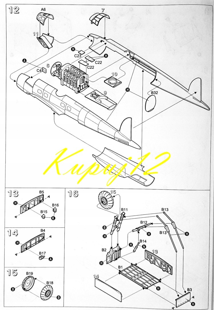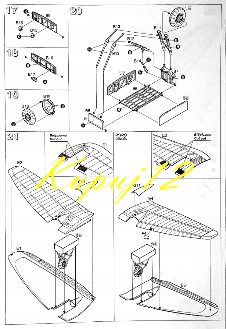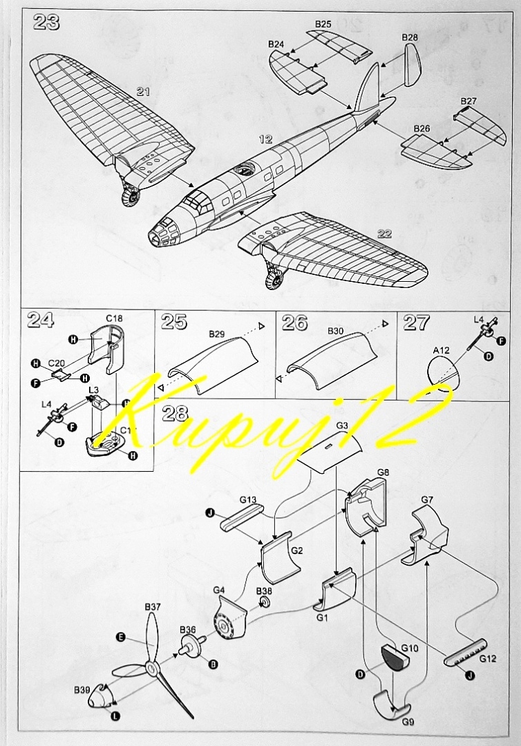Пластикові елементи необхідно вирізати з каркасів, підігнати та склеїти відповідно до інструкції зі складання, що додається.