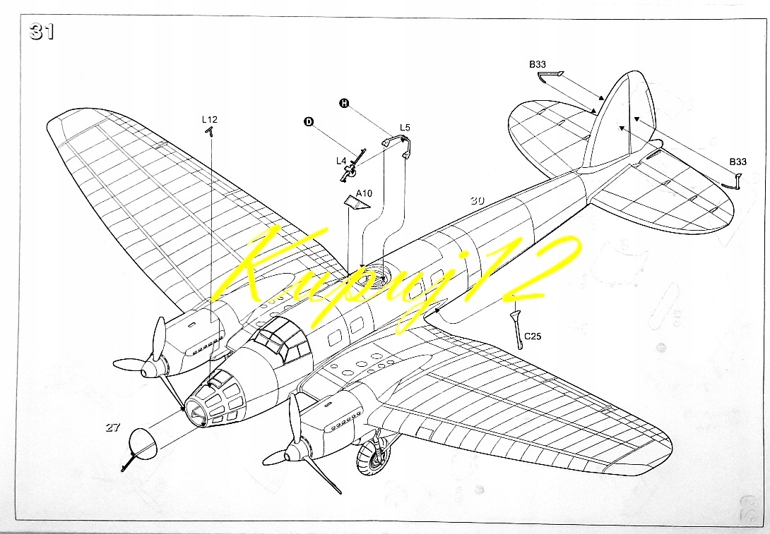 У набір входить ДУЖЕ ТОЧНИЙ комплект пластикової моделі для літака Heinkel He 111a b> у масштабі 1:72