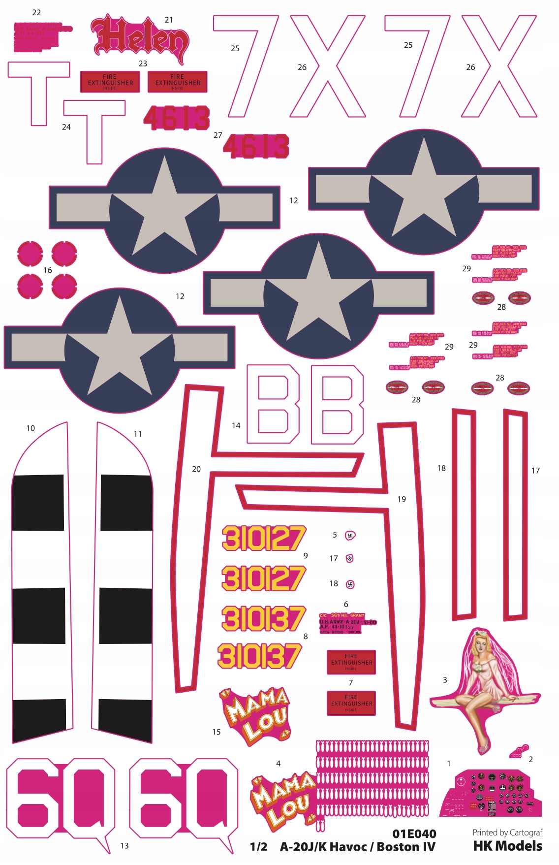 Модель літака Douglas A-20J/K Havoc / Boston IV 01E040 HK Models