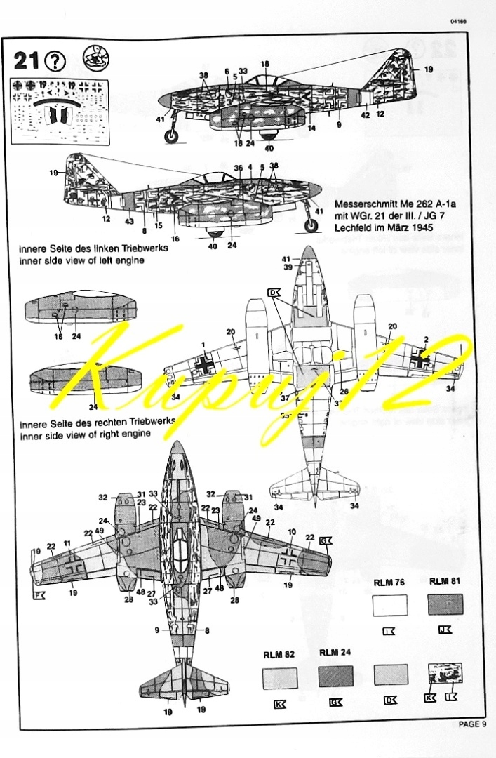 Модель літака Messerschmitt Me-262 A-1a + фарба, грунтовка, фарби, лак..