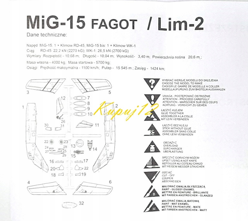 МіГ-15 Фагот, радянський реактивний винищувач. Польський розпис