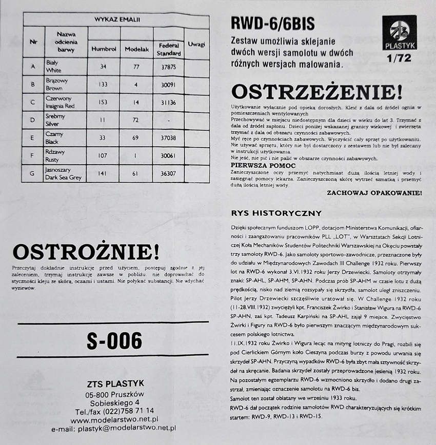 ТОЧНИЙ комплект пластикової моделі польського літака RWD-6 в масштабі 1:72.