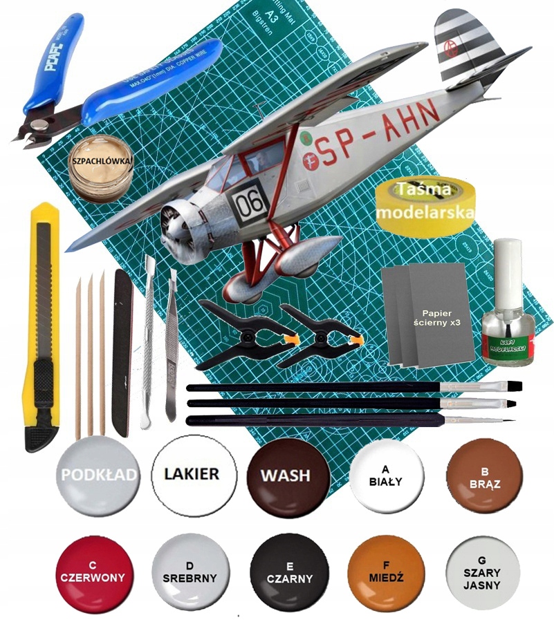 Модель літака RWD-6 Комплект: грунтовка, фарби, лак, змивка
