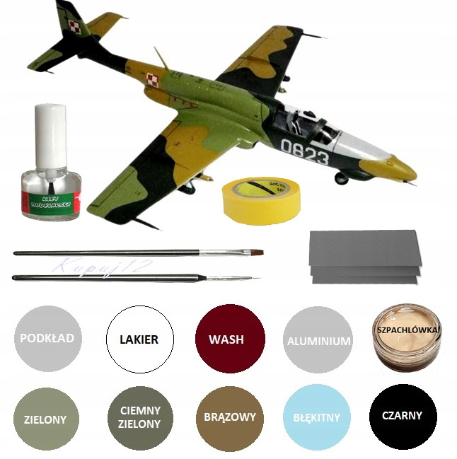 Модель літака TS-11 ISKRA 200BR НАБІР: ГРУНТ, ФАРБИ + ЛАК + КЛЕЙ + ПЕНЗЛИКИ