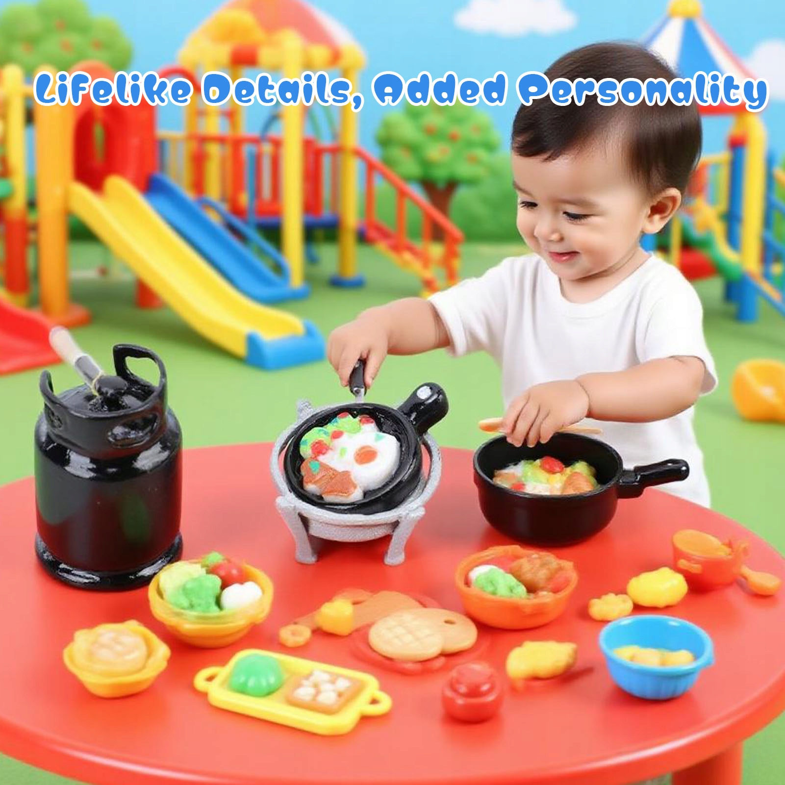 3. Багатофункціональний декоративний елемент: Крім використання лялькового будинку, цей мініатюрний кулінарний набір служить чарівними фотографічними реквізитами або декором шельфу, додаючи старовинну теплоту до мініатюрних дисплеїв та створення проектів