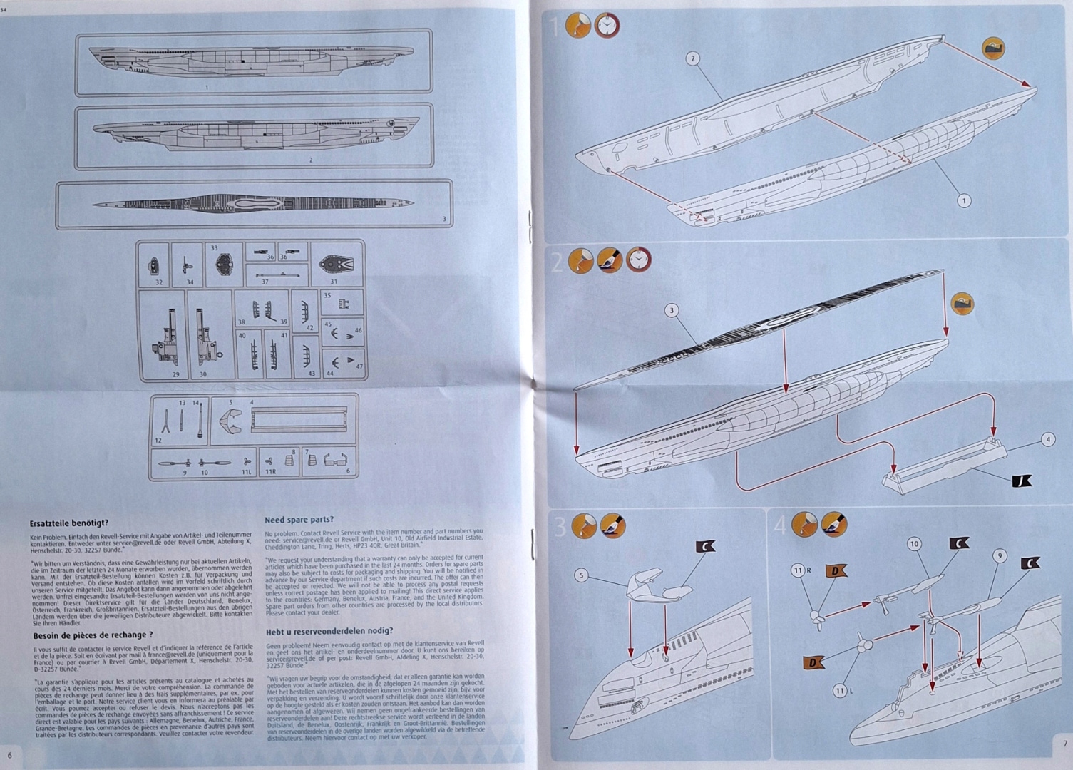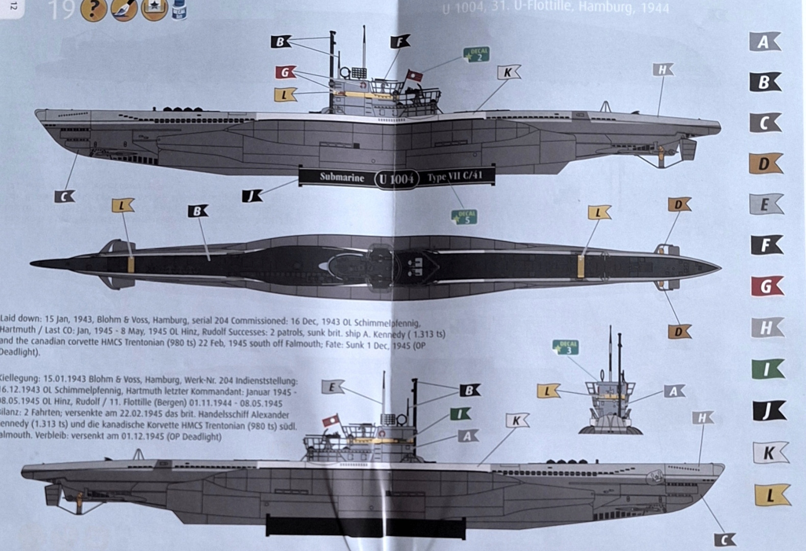 Набір включає пластикову модель для приклеювання німецької типу VII C/41 від шкали Другої світової війни