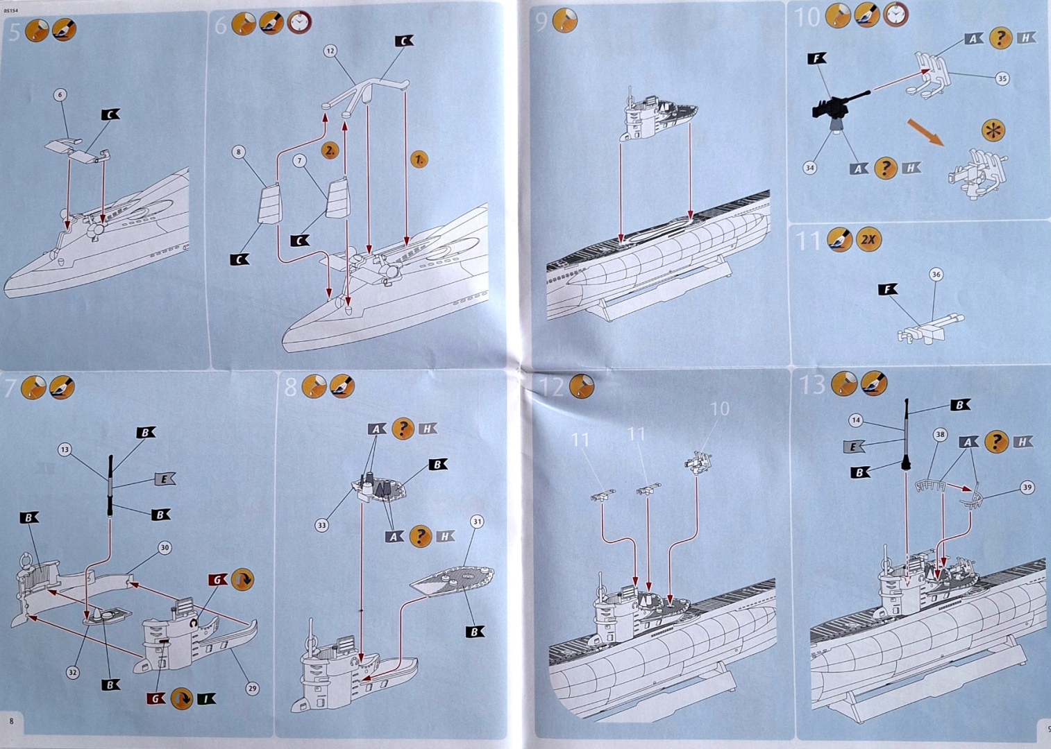 Модель німецького підводного човна U-Boot тип VII C/41+ килимок, клей, фарби ..