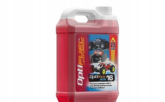 паливо, призначене для автомобілів. Optimix RTR - це паливо з дуже високою продуктивністю, призначеним для загального використання, а не для конкурентних додатків. Паливо: метанол: 69%нітометан: 16%синтетичне масло Клоц: 15%