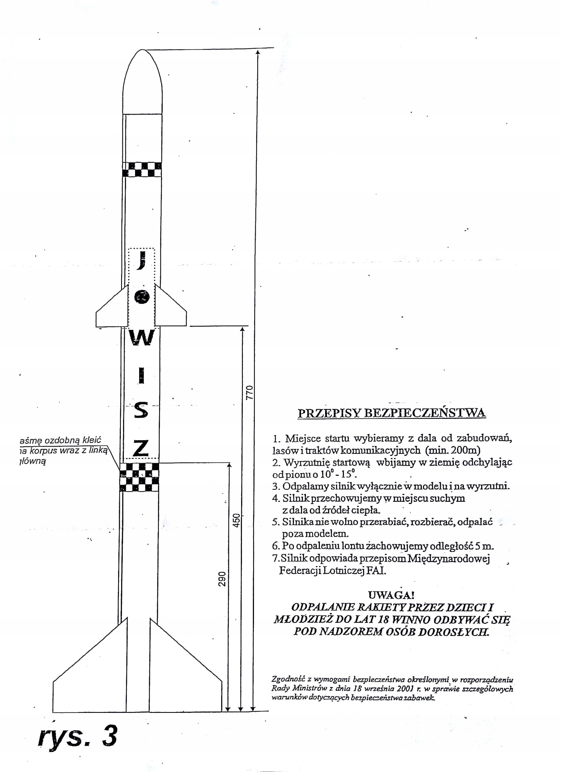 Ракета JOWISZ із парашутом є однією з найбільших ракет із парашутом, які пропонуються на ринку. Призначений для початківців моделістів. Пам’ятайте, що діти та підлітки повинні запускати ракету під наглядом дорослих. Набір по частинах, призначений для самостійної збірки. Модель виготовлена з картону, бальзи та поролону. У комплект входить один двигун, що забезпечує один запуск ракети. Щоб продовжити веселощі, вам знадобиться інший двигун, який можна придбати.