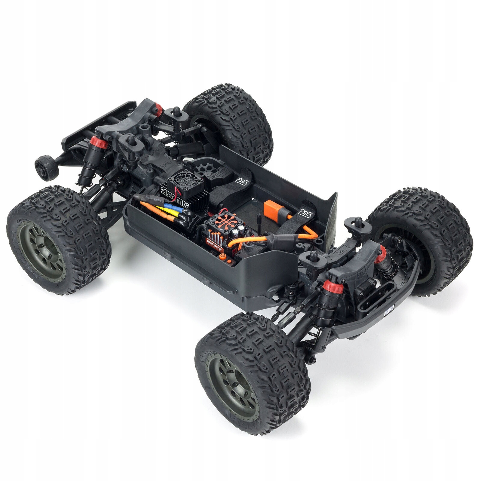 Потужніше композитне шасі та алюмінієві монтажні пластини підвіски сприяють нестримній продуктивності платформи 4X4 3S BLX. Конструкція шасі скомпонована за перевіреною компонуванням компонентів для досягнення ідеального балансу. Центральний вал, акумулятор з одного боку і електроніка з іншого. Вся ходова частина додатково оснащена вищими бічними захисними огородженнями, які обмежують потрапляння бруду всередину ходової частини. Акумуляторна батарея надійно фіксується за допомогою стяжок.
