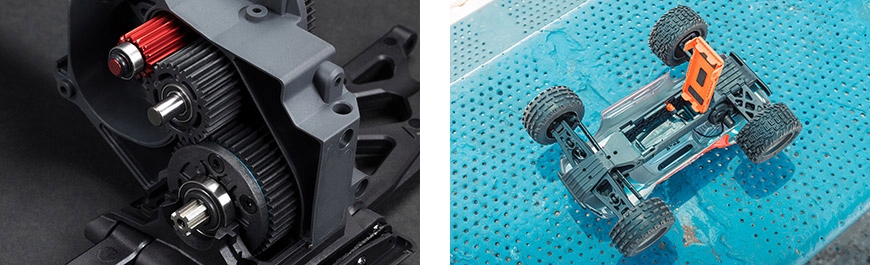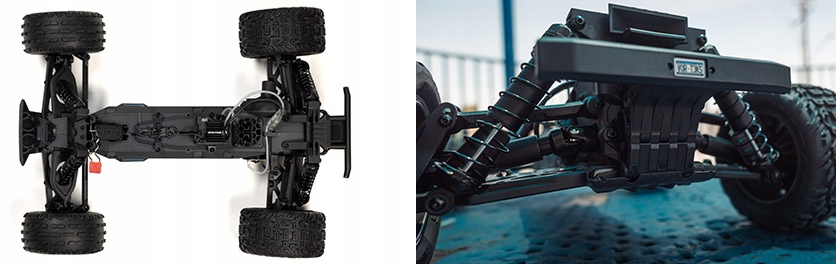 Композитне шасі виготовляється з довговічності, відомою з інших моделей ARRMA. Він має структуру з твердим вузьким тілом, плоским знизу, щоб запобігти прикріпленню з перешкодами.