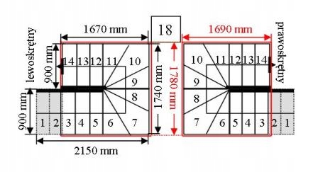 Кількість елементів: 14 сходинок / 15 рівнів (верхня сходинка нижче верхнього поверху)