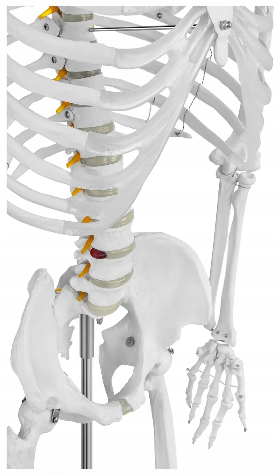 Легка та швидка установка скелета означає, що його робота не викликає проблем. Щоб побудувати модель, все, що вам потрібно зробити, - це скрутити опорний стрижень всередині підставки, ковзати в підставках, скласти кінцівки і повісити на нього скелет. Усі ці заходи повинні зайняти не більше декількох хвилин. Крім того, око на модель дозволяє безпечно повісити її на опорний стрижень, гачок або інші об'єкти, встановлені, наприклад на стіні або стелі, щоб змінити перспективу аналізованої частини тіла.