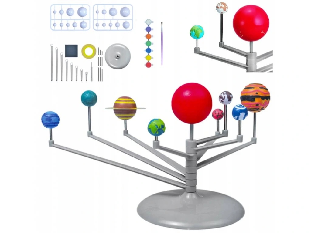 Створіть власну сонячну модель! Зустріньте планети та дізнайтеся, наскільки вони далеко від сонця. Модель рухається, і завдяки фосфоресцентним кольором вона світить вночі.