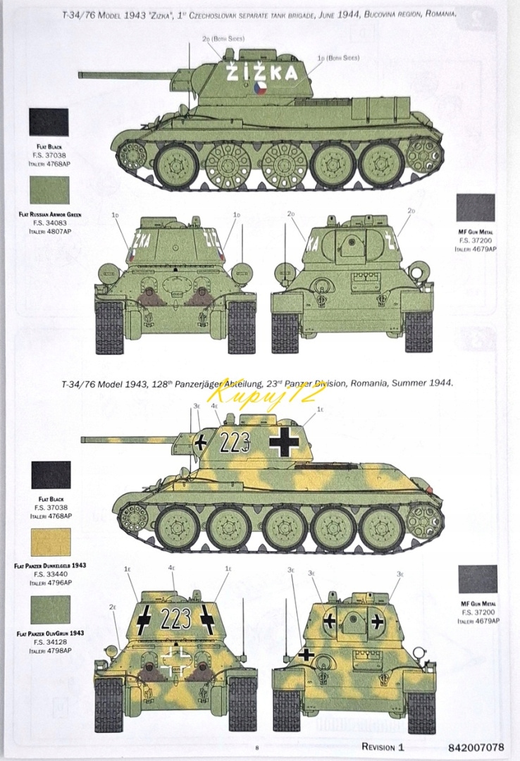 Просматривая «Модель T-34/76 Model 1943 Plock Painting Set: Mat Mat, лак, Wash», вы можете быть уверены, что данный товар из каталога «Военные» будет доставлен из Польши и проверен на целостность. В цене товара, указанной на сайте, учтена доставка из Польши. Внимание!!! Товары для Евросоюза, согласно законодательству стран Евросоюза, могут отличаться упаковкой или наполнением.