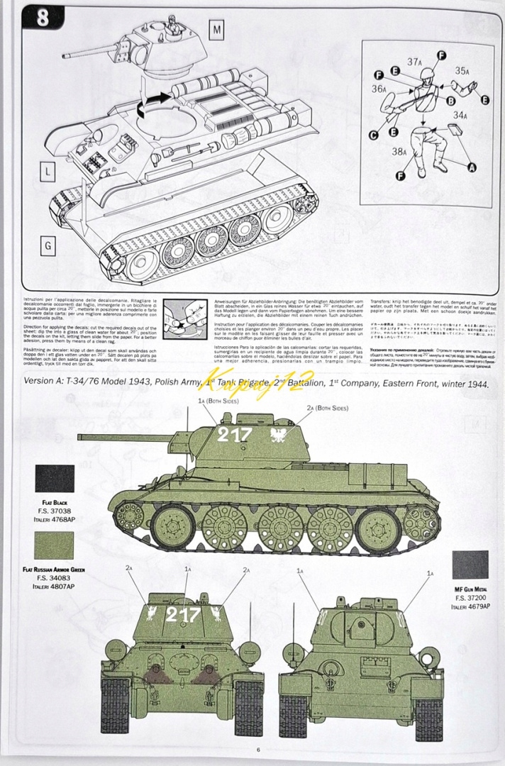 Модель T-34/76 Модель 1943 р. Польський малярний набір: килимок для фарби, лак, мийка