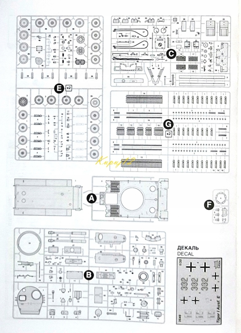 Набір включає пластикову модель для приклеювання німецького важкого тигрового танка (рання версія, 1943 рік, битва за Курськ)