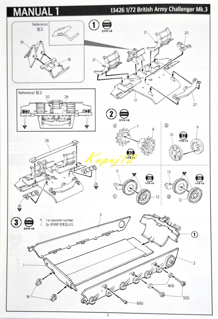 Пластикові елементи вирізати з каркасів, підігнати та склеїти відповідно до інструкції зі складання, що додається.