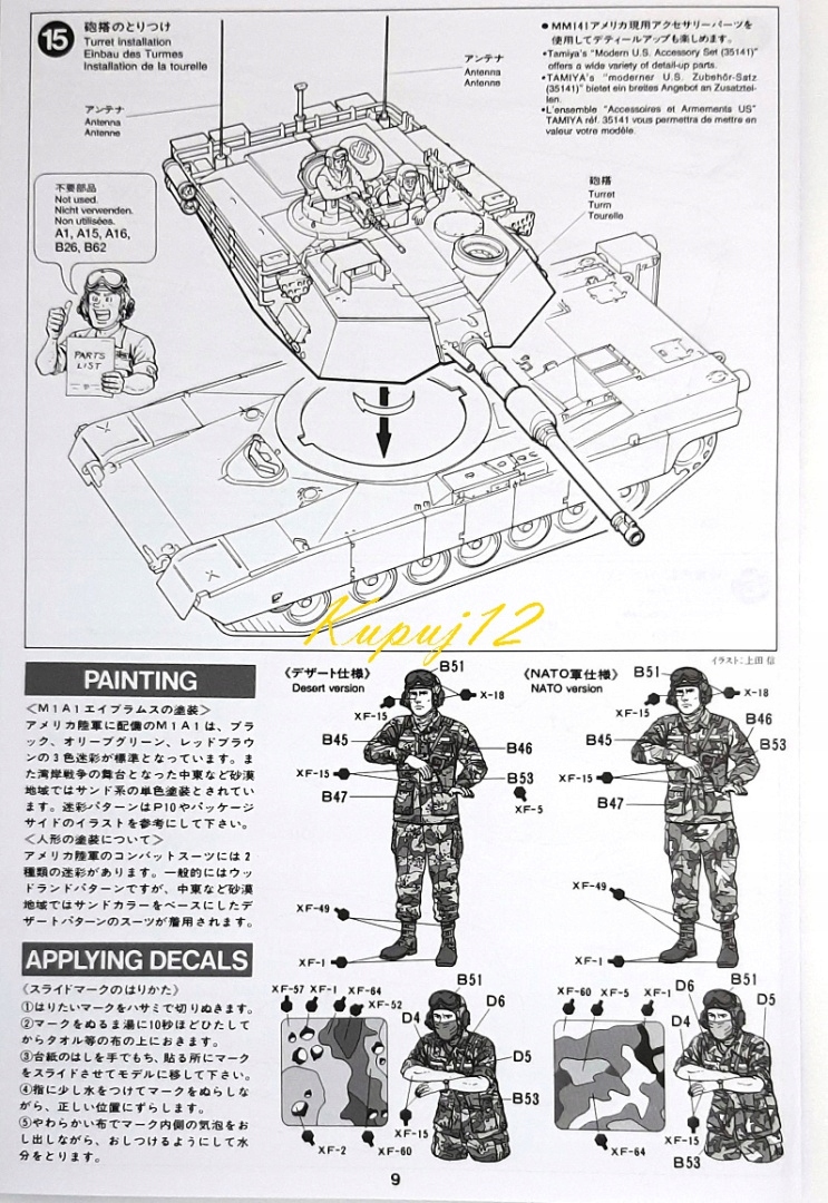 Модель необхідно розфарбувати моделюючими фарбами відповідно до запропонованої схеми малювання, яка міститься в інструкції, а потім нанести декалі, що входять до набору.