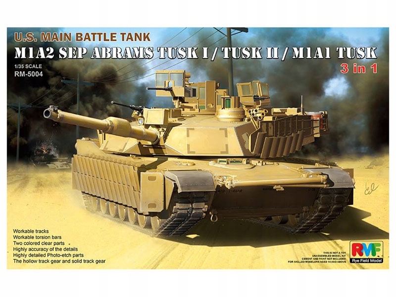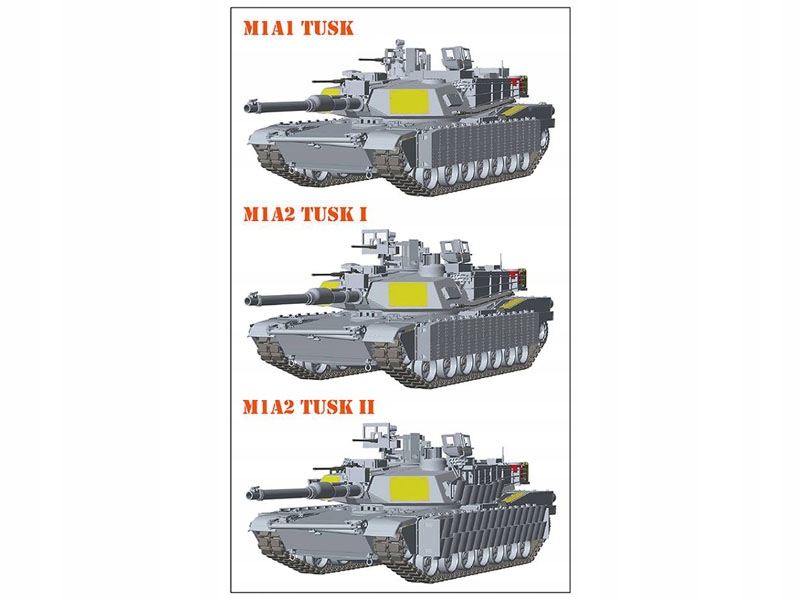 - Модель збірки Abrams (містить частини для створення 1 із 3 моделей: M1A1 Abrams TUSK, M1A2 SEP Abrams TUSK I або M1A2 SEP Abrams TUSK II),
