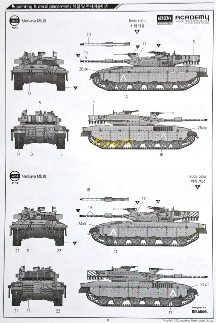 Модель танка Merkava Mk.III Academy масштабу 1:72 13429 та набір аксесуарів для її доопрацювання.