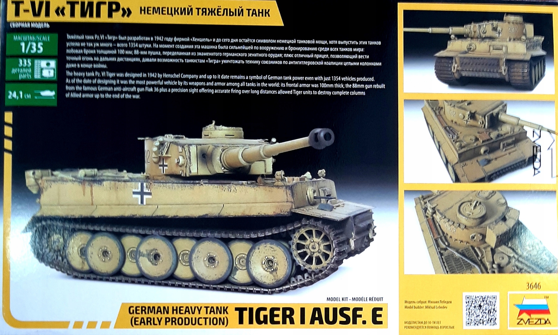 У набір входить пластикова модель німецького важкого танка TIGER (рання версія, 1943 р., Курська битва)