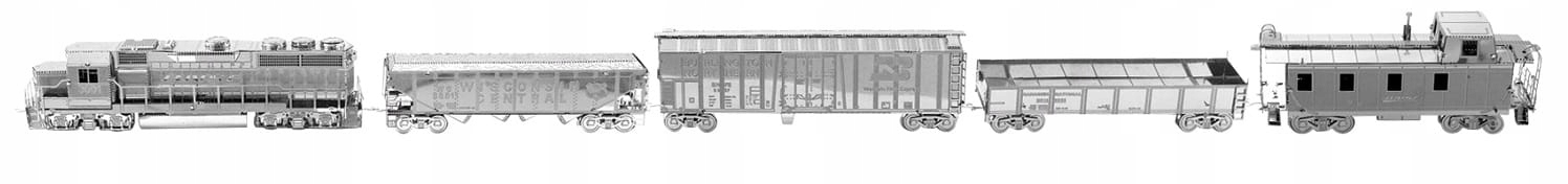 Набір включає тепловоз і чотири спеціалізованих залізничних вантажних вагони.