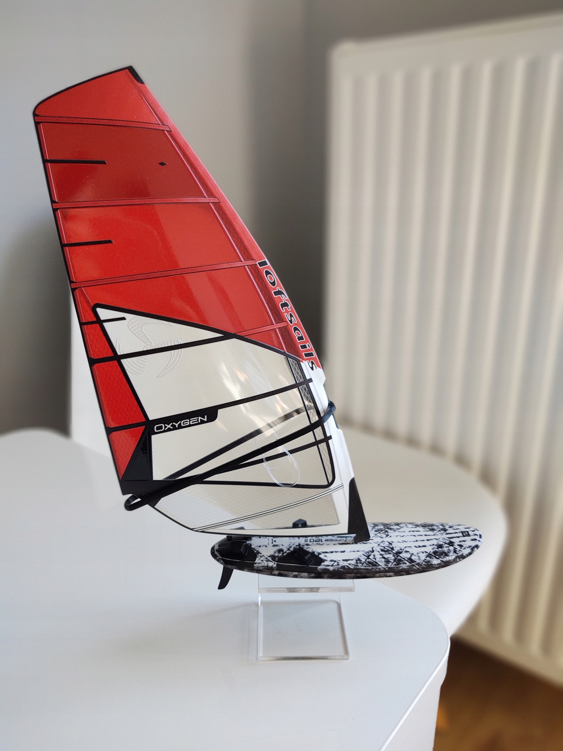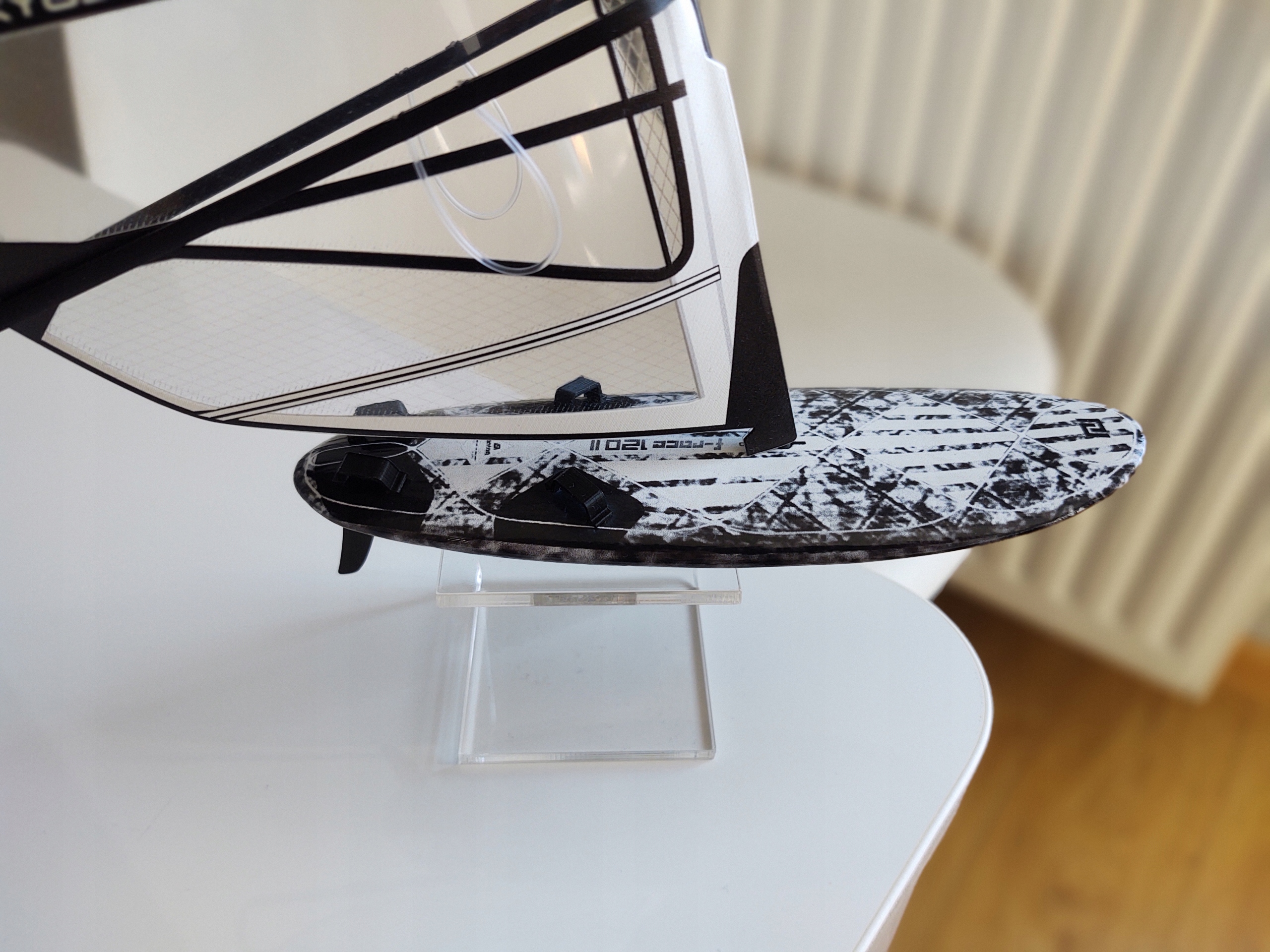 - Усі елементи моделі (дошка, гік, кіль, підніжжя) створені на 3D-принтері (за винятком щогли).