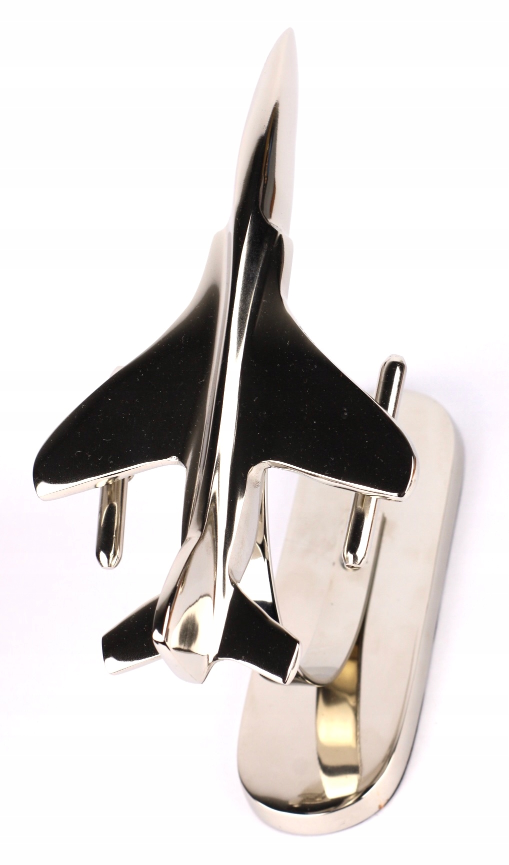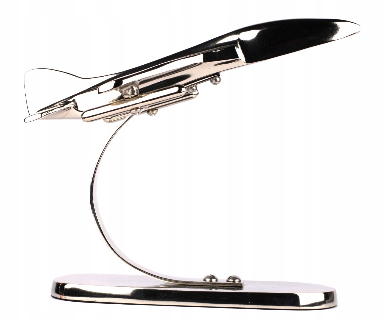 Сучасна форма моделі реактивного літака робить її чудовою в сучасних композиціях. Завдяки розташуванню на ніжці фігурка створює враження руху.