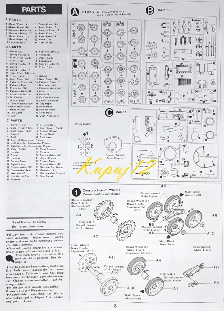 Пластикові елементи повинні бути вирізані з кадрів, підходити та склеювати відповідно до прикріплених інструкцій складання.