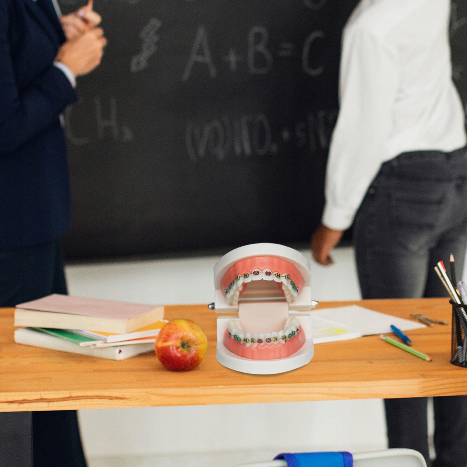 Модель зубів з металевими брекетами. Модель чищення зубів до класу