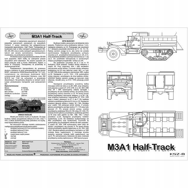 Modelik 13/10 - Transporter M3A1 Half-Track 1:25