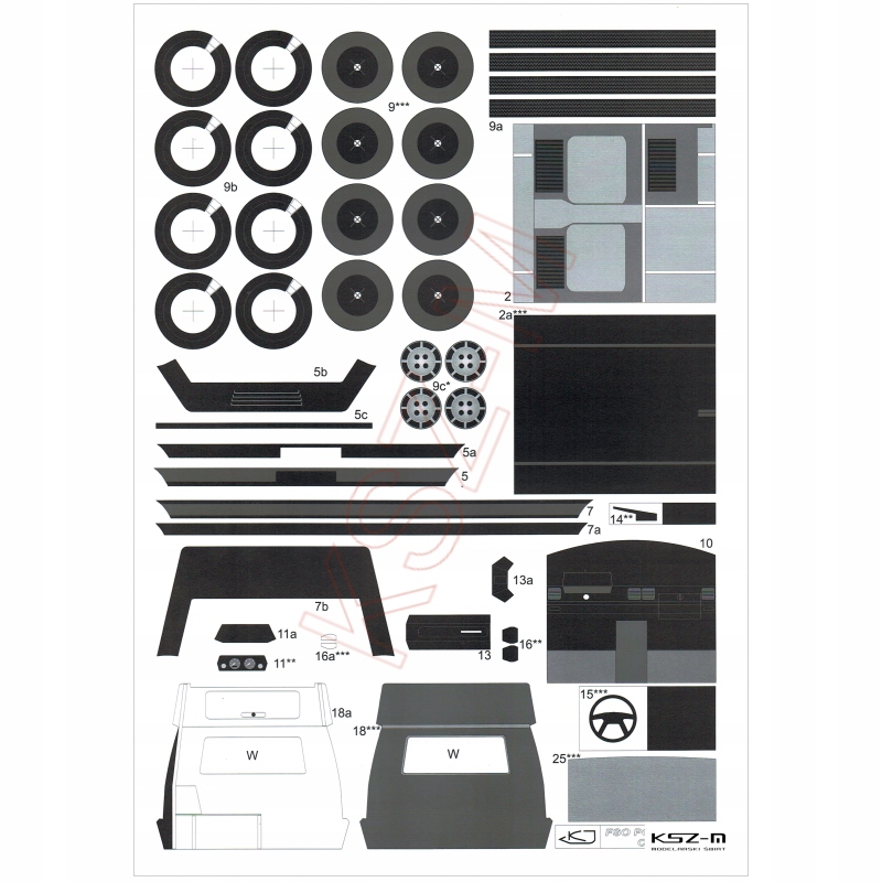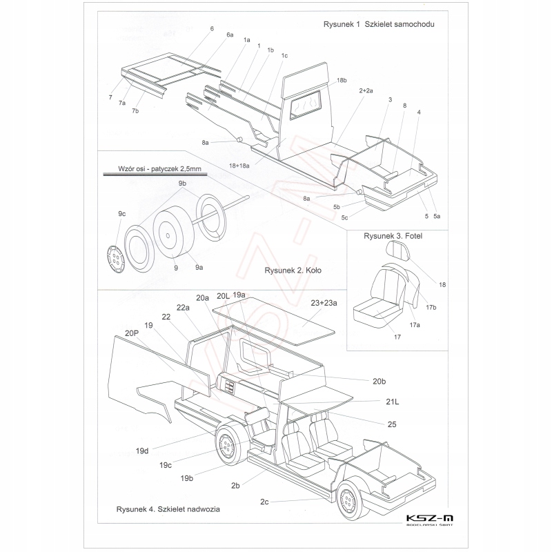 - 1 сторінка формату А4 з описом транспортного засобу та інструкціями зі складання моделі