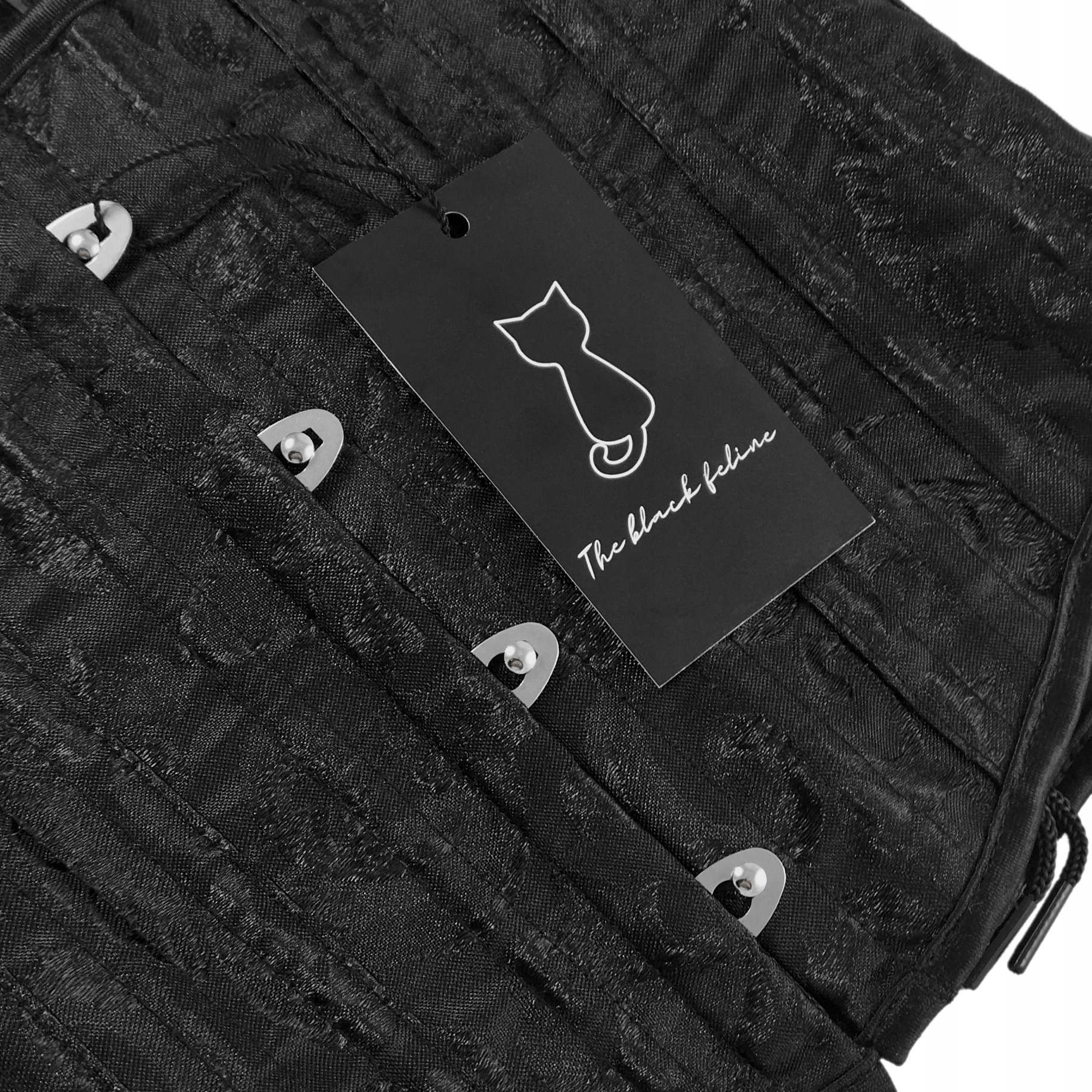 Зав'язаний корсет типу UNDERBUST з щільної міцної тканини з непомітним квітковим малюнком. Конструкція складається з 14 кісточок.