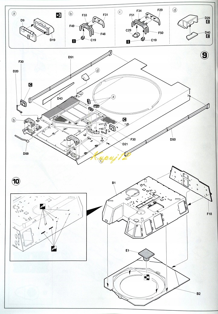 Пластикові елементи необхідно вирізати з каркасів, підігнати та склеїти відповідно до інструкції зі складання, що додається.
