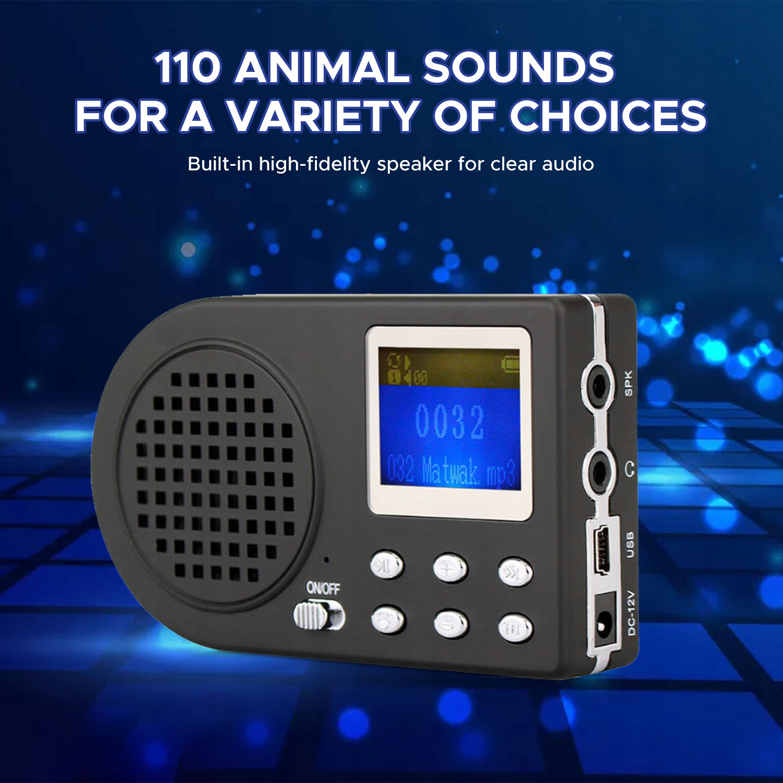 2. РК-дисплей для простого керування: легко переміщуйтеся між 110 різними звуками тварин за допомогою одноколірного РК-дисплея, що забезпечує зручність роботи.
